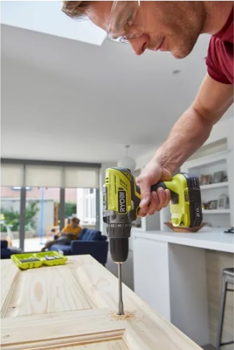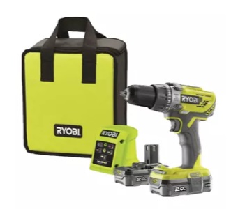Trapano avvitatore a percussione 18V compatibile con la piattaforma Ryobi 18V, completo di due batterie da 2.0Ah.